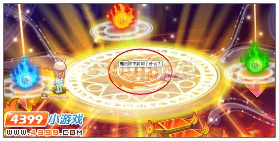 守护者鼠标点击任意一团火焰,就会出现一个魔法阵