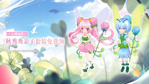 4月3日公测后,小仙子登录游戏即可领取秋秀秀·亲子套装。